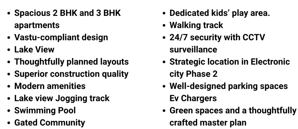 Sowmya Skyla is strategically located in a rapidly growing neighborhood near Electronic City Phase 2, offering effortless access to everything you need. From top educational institutions and trusted healthcare facilities to major IT parks, retail outlets, and entertainment zones—everything is just minutes away. Whether it’s your daily commute, your family’s needs, or weekend relaxation, Sowmya Skyla places you at the center of convenience, ensuring a lifestyle that’s both connected and comfortable.