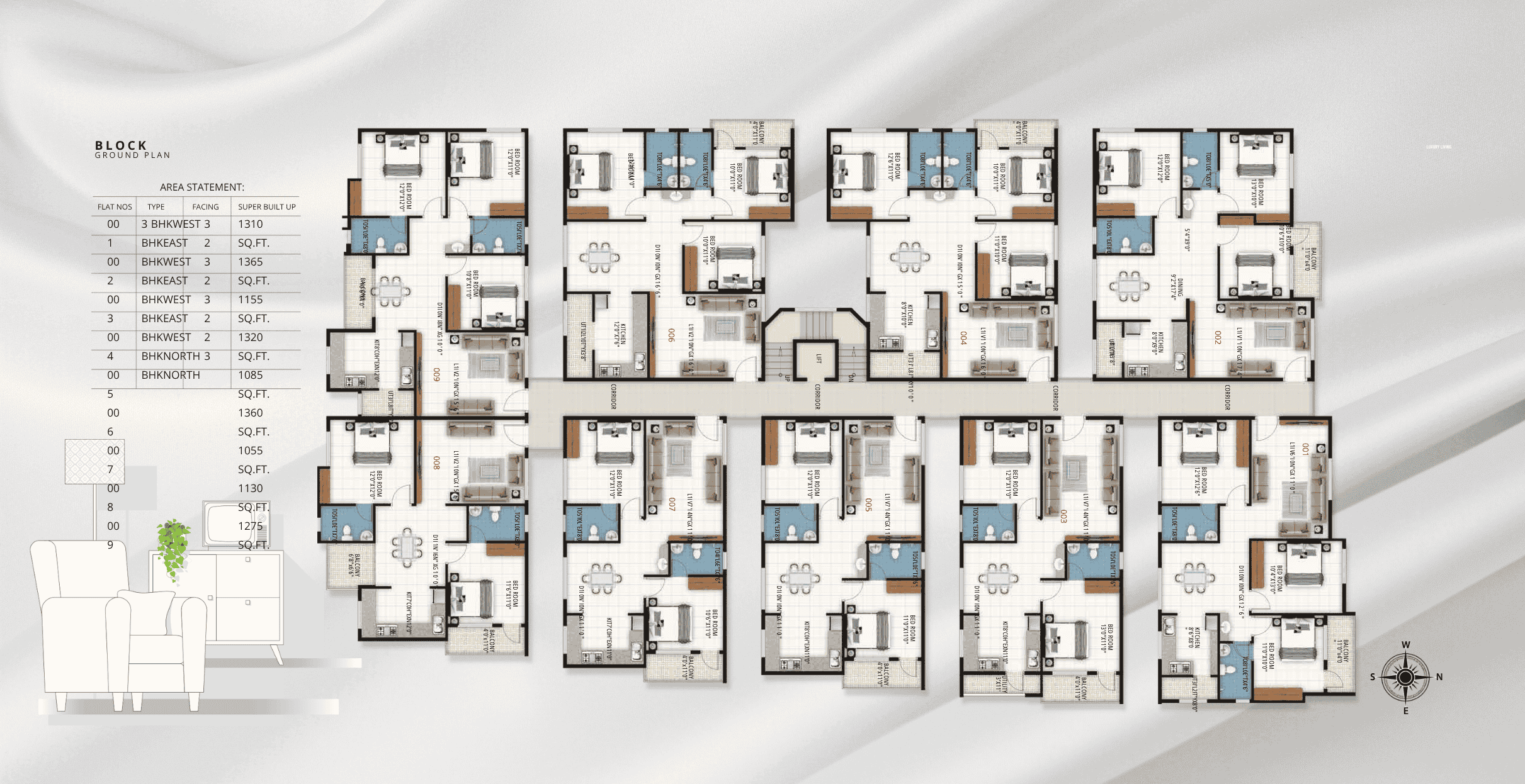 Spread across a well-planned layout, each apartment is designed with natural light, cross-ventilation, and smart space optimization. Whether you’re looking for a spacious 2BHK or a luxurious 3BHK, this project offers homes that reflect your lifestyle aspirations.